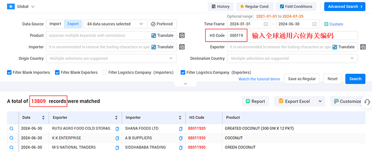 可以使用中国的出口数据编码进行搜索,但需要掌握一定的技巧。以下是具体操作步骤: